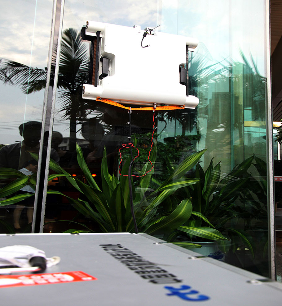 “玻璃幕墻無(wú)損檢測(cè)機(jī)器人”按指令向上爬行檢測(cè)幕墻
