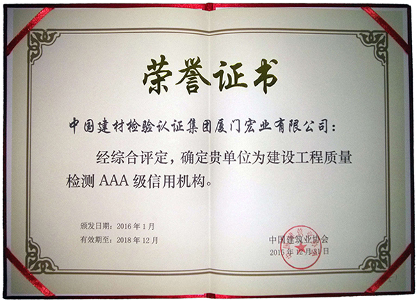 全國建設(shè)工程質(zhì)量檢測AAA級信用機構(gòu)
